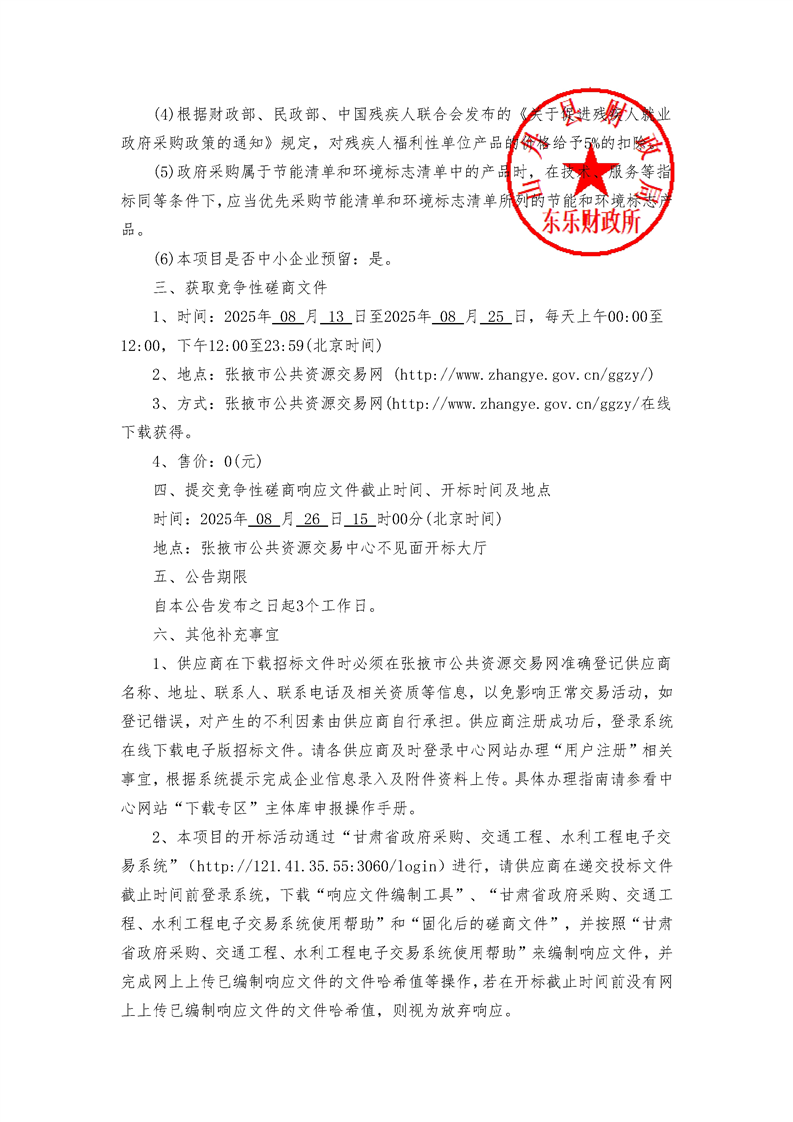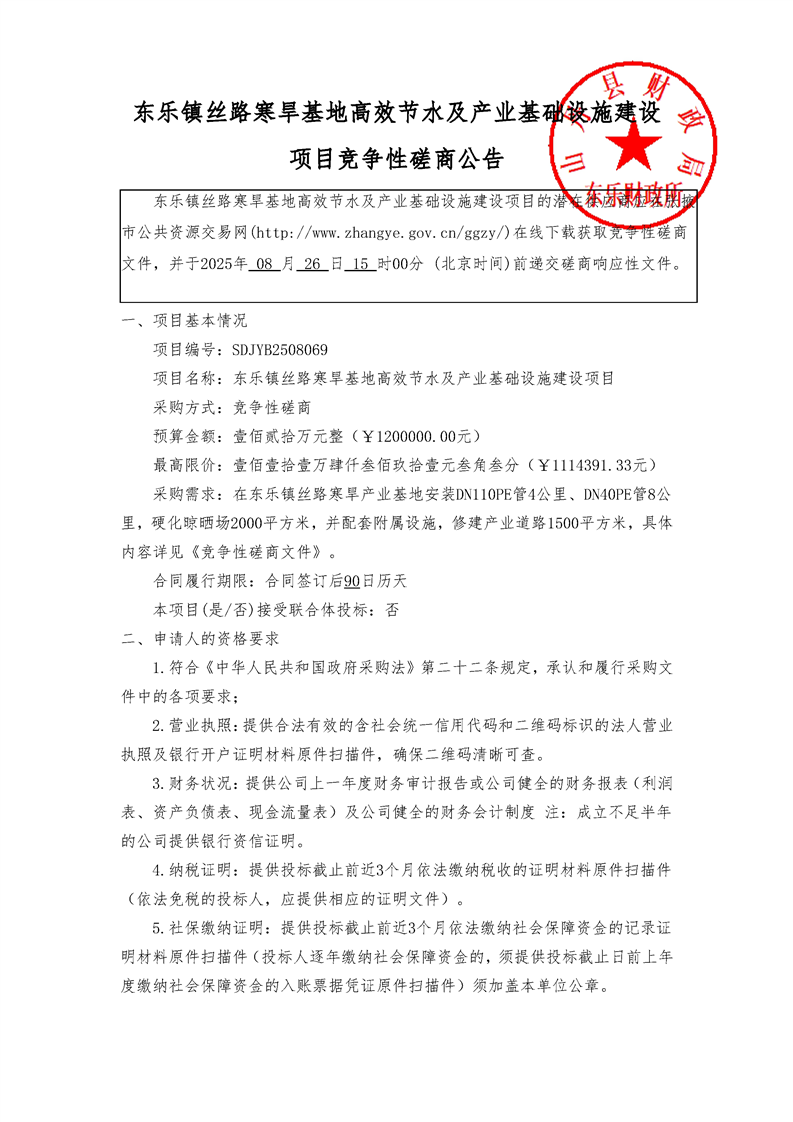 东乐镇丝路寒旱基地高效节水及产业基础设施建设项目竞争性磋商公告 招标公告